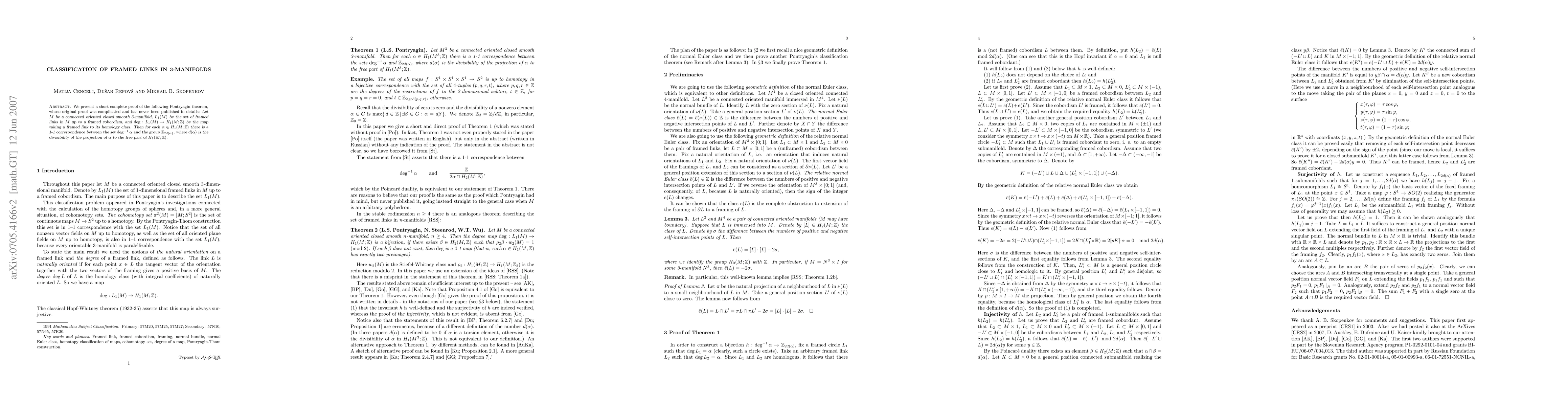 This paper offers a simplified proof of the Pontryagin theorem, establishing a one-to-one correspondence between framed links in a closed 3-manifold and elements in its first homology group. The correspondence is defined via a degree map, with the number of elements in each pre-image set determined by the divisibility of the link's homology class projection.