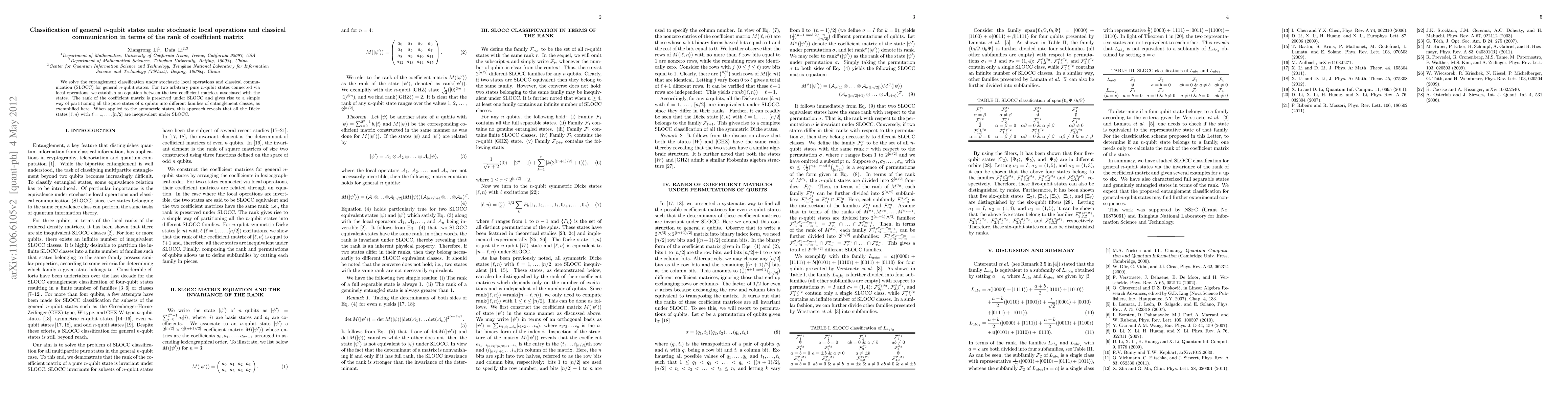 The research established an equation between two coefficient matrices associated with n-qubit states, which preserves the rank under SLOCC.