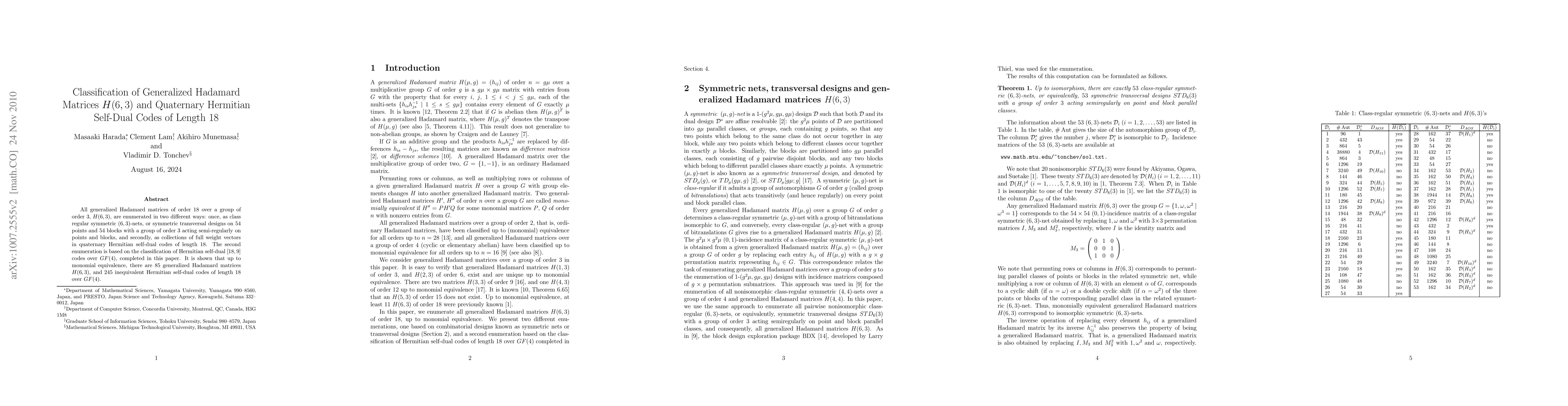 This paper enumerates all generalized Hadamard matrices H(6,3) of order 18, showing they correspond to symmetric transversal designs and full weight vectors in quaternary Hermitian self-dual codes of length 18. It concludes that there are 85 such matrices and 245 inequivalent codes.