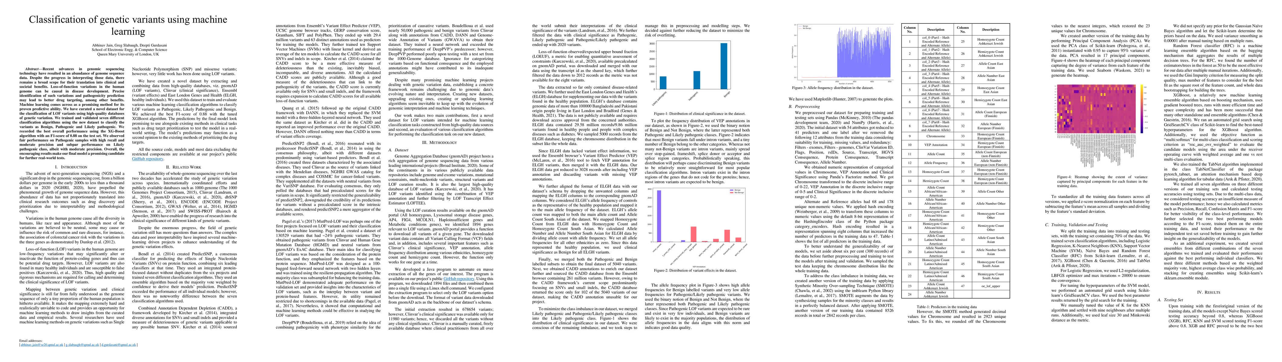 This paper explores the classification of loss-of-function genetic variants using machine learning, curating a new dataset and testing seven algorithms. The XG-Boost model achieved the best performance with an F1-score of 0.88, showing promise for clinical applications despite challenges in classifying Likely pathogenic variants.
