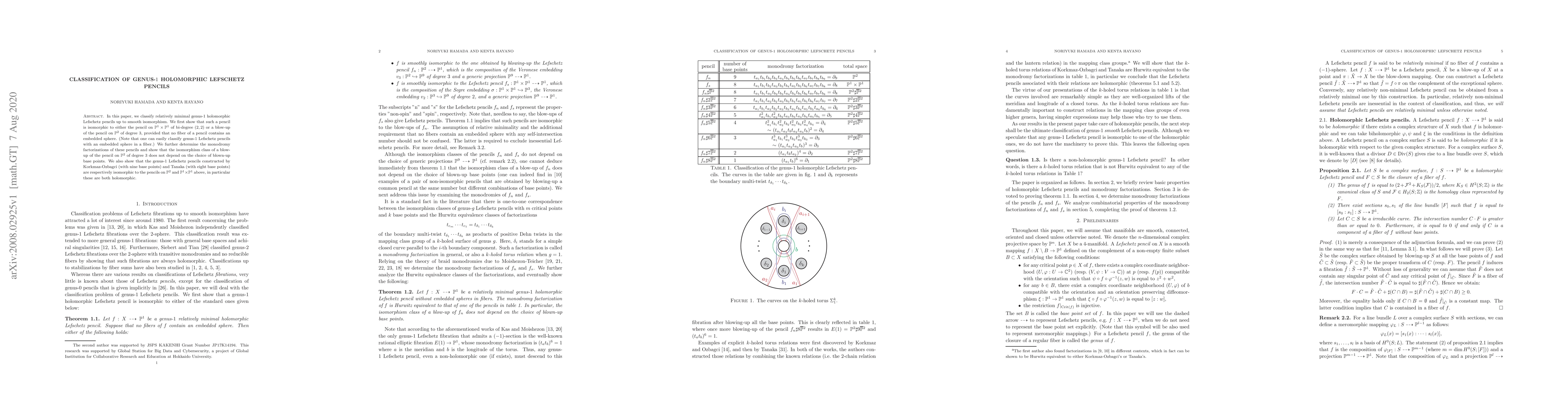 This paper classifies genus-$1$ holomorphic Lefschetz pencils up to smooth isomorphism, showing they are isomorphic to either a $(2,2)$ pencil on $\mathbb{P}^1\times \mathbb{P}^1$ or a degree $3$ pencil on $\mathbb{P}^2$ with specific monodromy factorizations, and confirms the holomorphic nature of Korkmaz-Ozbagci and Tanaka constructions.