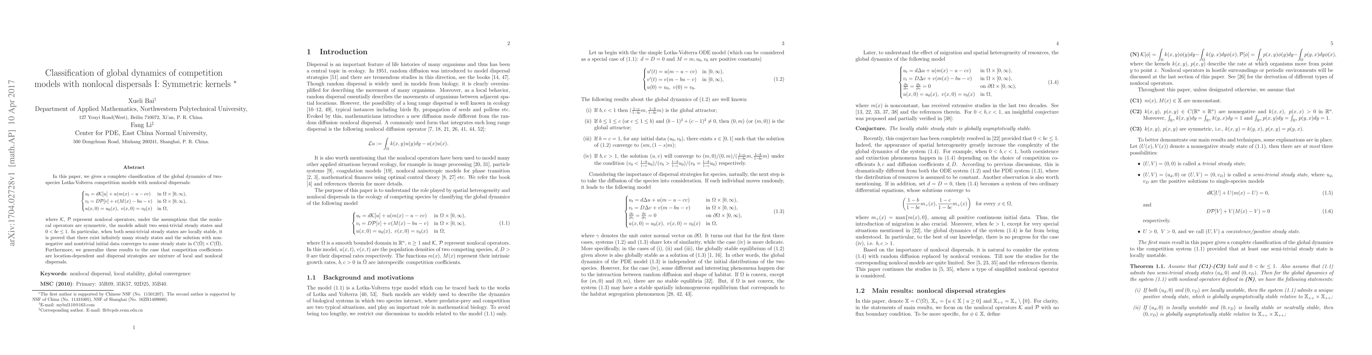 This paper classifies the global dynamics of two-species Lotka-Volterra competition models with symmetric nonlocal dispersals, showing that infinitely many steady states exist and solutions converge to them under certain conditions. It also extends the results to models with location-dependent competition coefficients and mixed dispersal strategies.