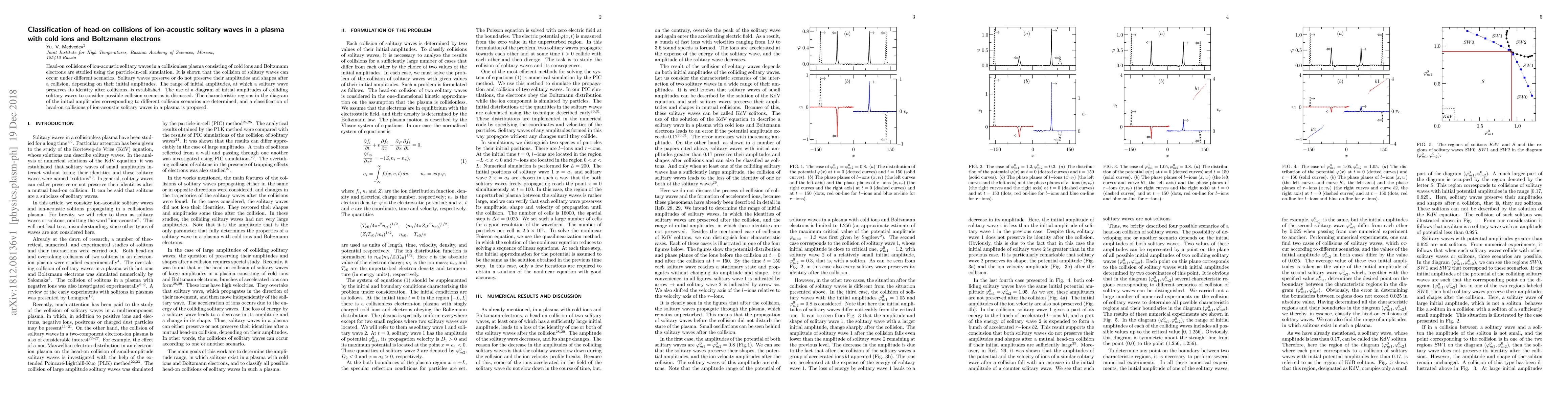 This paper uses particle-in-cell simulations to classify head-on collisions of ion-acoustic solitary waves in plasmas with cold ions and Boltzmann electrons, finding that wave amplitudes and shapes post-collision vary with initial conditions, leading to a proposed classification based on initial amplitude diagrams.