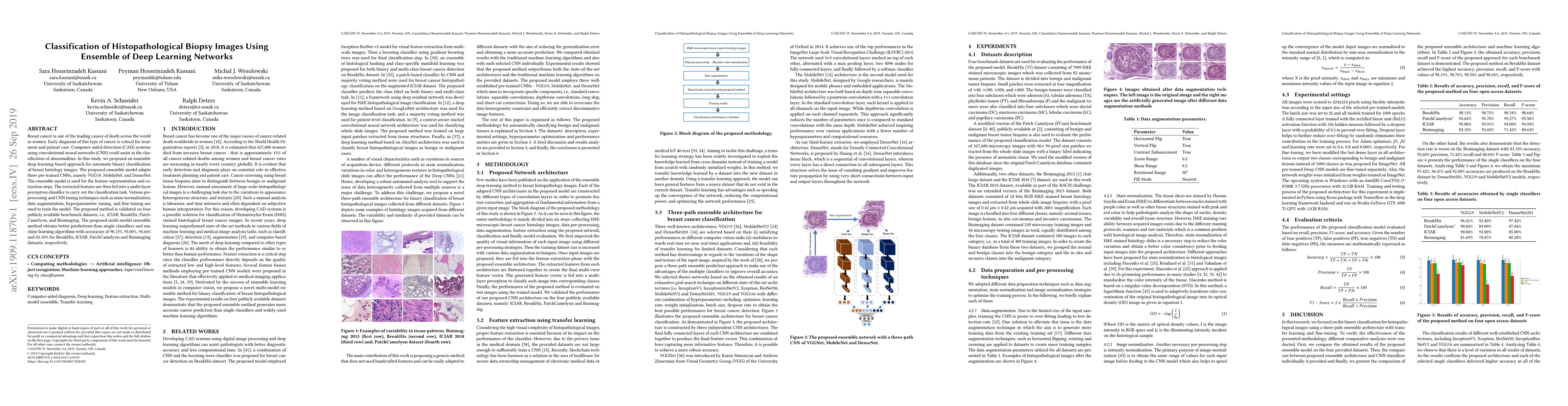 Breast cancer is one of the leading causes of death across the world in women. Early diagnosis of this type of cancer is critical for treatment and patient care. Computer-aided detection (CAD) systems using convolutional neural networks (CNN) could assist in the classification of abnormalities. In this study, we proposed an ensemble deep learning-based approach for automatic binary classification of breast histology images. The proposed ensemble model adapts three pre-trained CNNs, namely VGG19, MobileNet, and DenseNet. The ensemble model is used for the feature representation and extraction steps. The extracted features are then fed into a multi-layer perceptron classifier to carry out the classification task. Various pre-processing and CNN tuning techniques such as stain-normalization, data augmentation, hyperparameter tuning, and fine-tuning are used to train the model. The proposed method is validated on four publicly available benchmark datasets, i.e., ICIAR, BreakHis, PatchCamelyon, and Bioimaging. The proposed multi-model ensemble method obtains better predictions than single classifiers and machine learning algorithms with accuracies of 98.13%, 95.00%, 94.64% and 83.10% for BreakHis, ICIAR, PatchCamelyon and Bioimaging datasets, respectively.