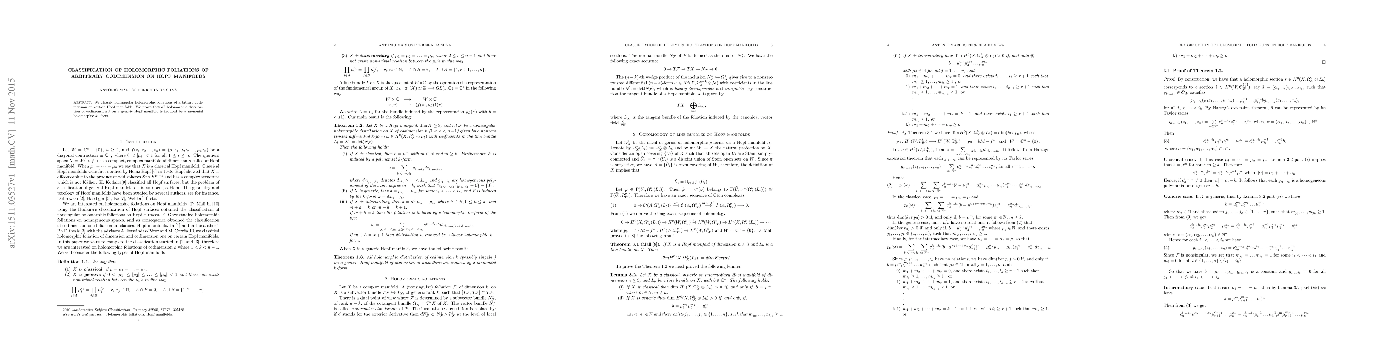 Summary: This paper classifies nonsingular holomorphic distributions of any codimension on specific Hopf manifolds, demonstrating that such distributions are always derived from monomial holomorphic k-forms. The findings provide a comprehensive understanding of the structure of these foliations on the given manifolds.