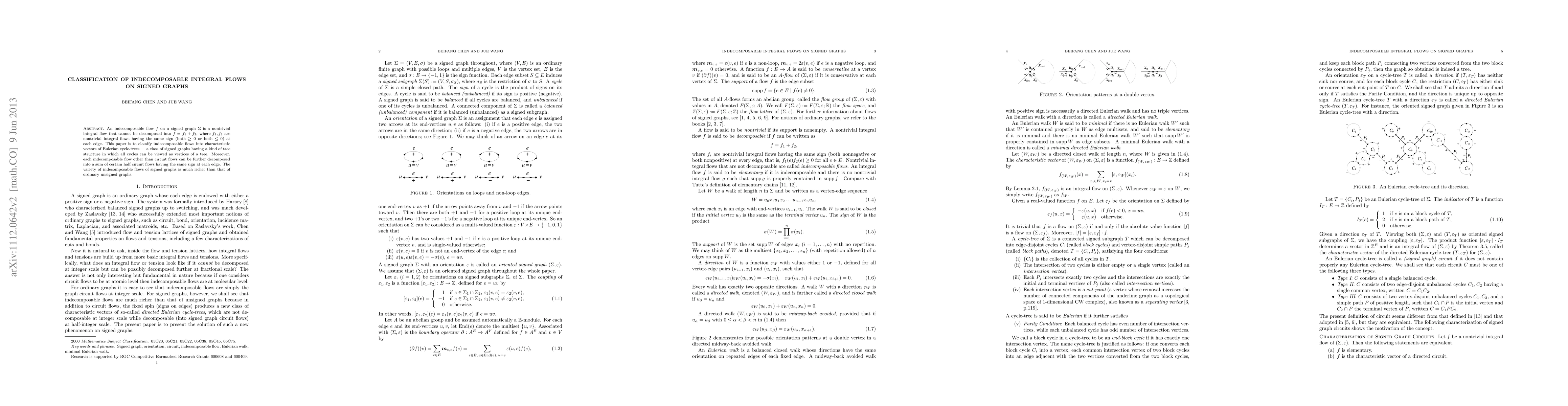 This paper classifies indecomposable flows on signed graphs into characteristic vectors of circuits and Eulerian cycle-trees, revealing that these flows can be decomposed further into half circuit characteristic vectors. The diversity of indecomposable flows in signed graphs is significantly greater than in unsigned graphs.