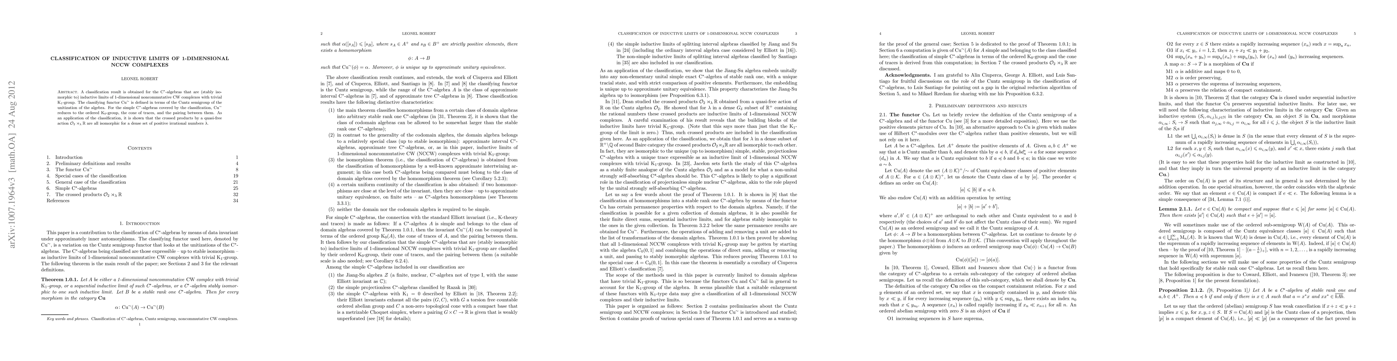 A classification result is obtained for the C*-algebras that are (stably isomorphic to) inductive limits of 1-dimensional noncommutative CW complexes with trivial $K_1$-group. The classifying functor Cu is defined in terms of the Cuntz semigroup of the unitization of the algebra. For the simple C*-algebras covered by the classification, Cu reduces to the ordered $K_0$-group, the cone of traces, and the pairing between them. As an application of the classification, it is shown that the crossed products by a quasi-free action $O_2\rtimes_\lambda \mathbb{R}$ are all isomorphic for a dense set of positive irrational numbers $\lambda$.