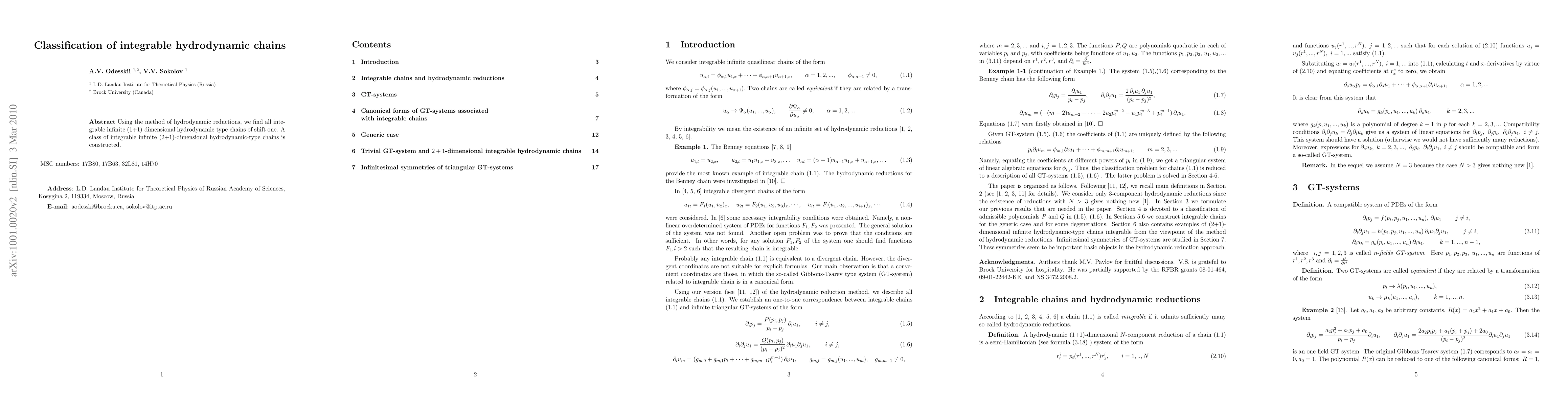 Understanding the structure and classification of hydrodynamic chains is crucial for understanding complex nonlinear systems