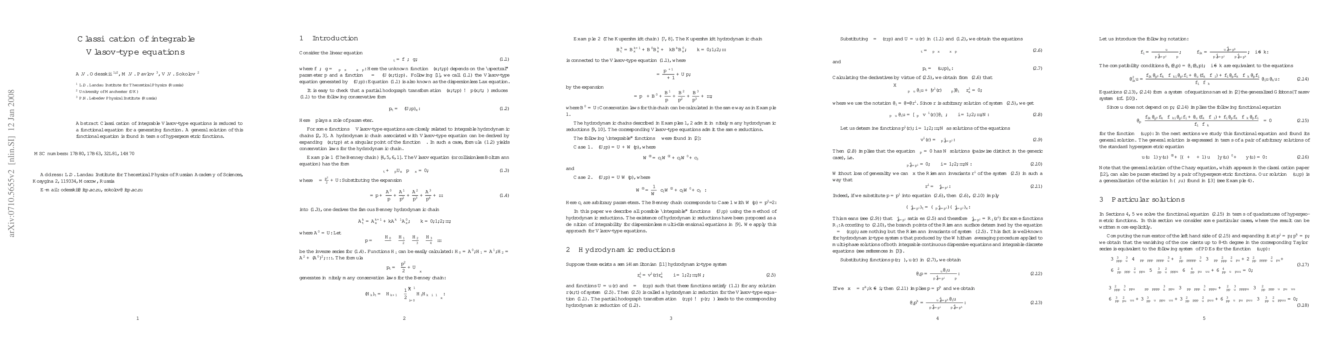 Classification of integrable Vlasov-type equations is reduced to a functional equation for a generating function. A general solution of this functional equation is found in terms of hypergeometric functions.