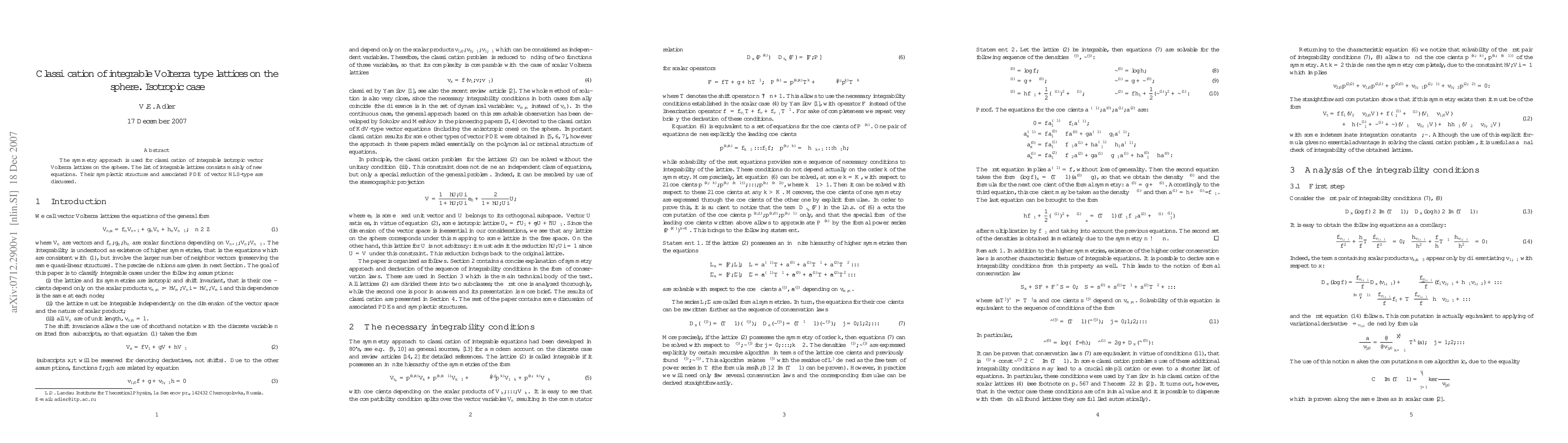 Summary: This paper classifies integrable isotropic vector Volterra lattices on the sphere using symmetry approaches, revealing a list primarily of new equations, and discusses their symplectic structure and associated vector NLS-type PDEs.