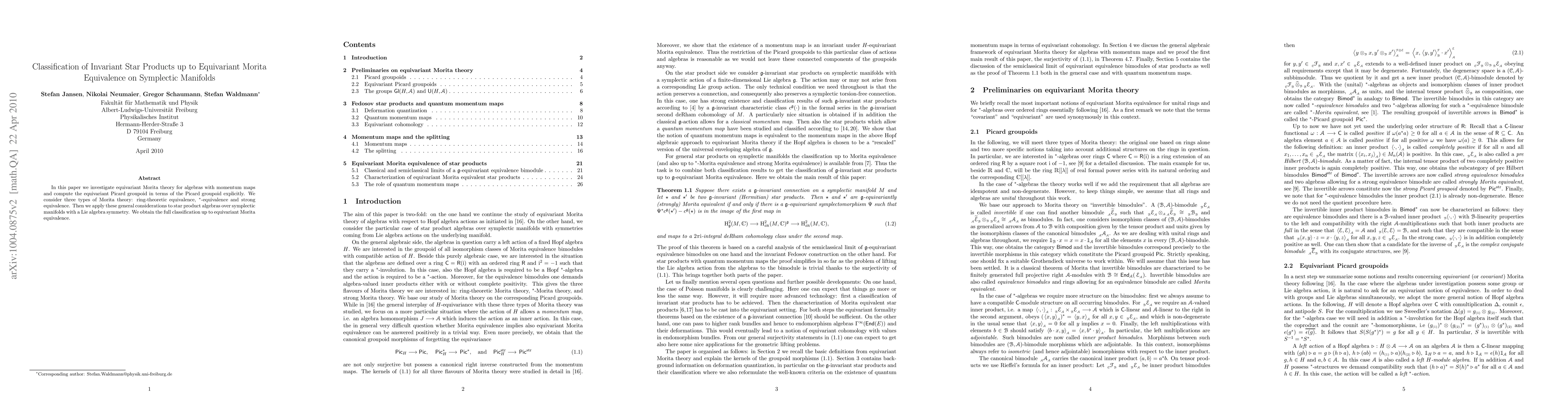 In this paper we investigate equivariant Morita theory for algebras with momentum maps and compute the equivariant Picard groupoid in terms of the Picard groupoid explicitly. We consider three types of Morita theory: ring-theoretic equivalence, *-equivalence and strong equivalence. Then we apply these general considerations to star product algebras over symplectic manifolds with a Lie algebra symmetry. We obtain the full classification up to equivariant Morita equivalence.