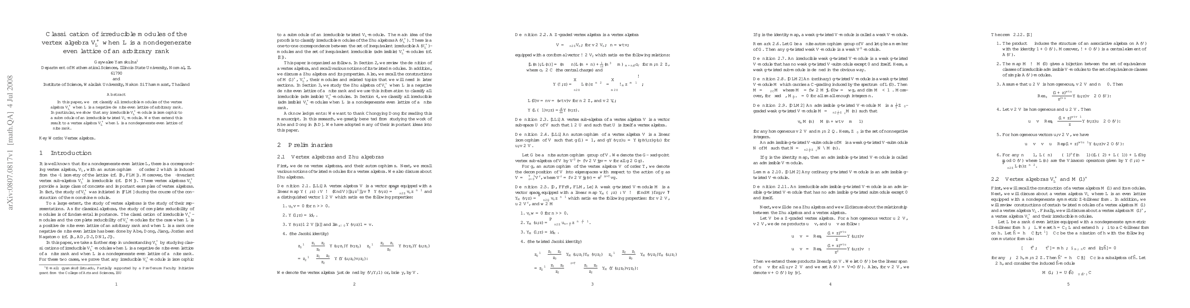 This paper classifies irreducible modules for the vertex algebra $V_L^+$ when $L$ is a negative definite even lattice of any rank, showing they are submodules of irreducible twisted $V_L$-modules. The classification is then extended to nondegenerate even lattices of finite rank.