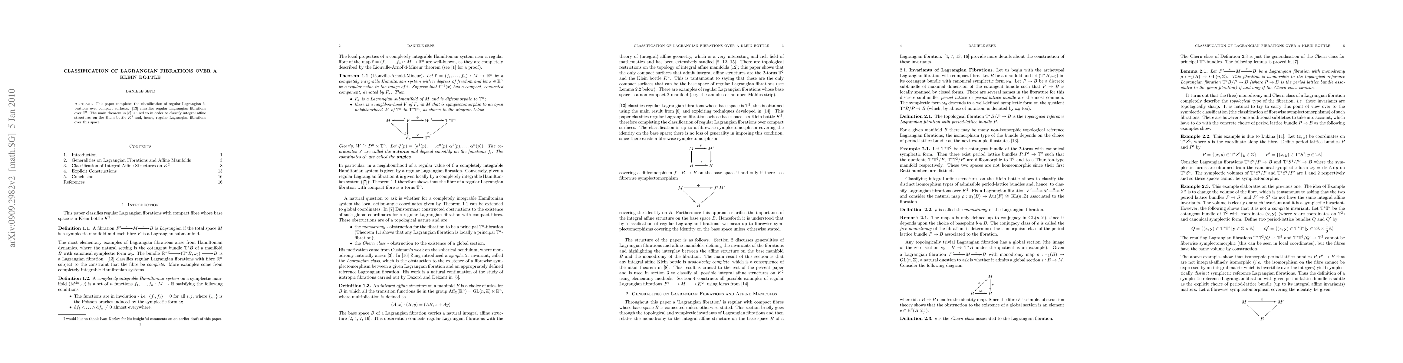 This paper classifies regular Lagrangian fibrations over the Klein bottle $K^2$ using Hirsch's main theorem, completing the classification over compact surfaces following Misha's work on $\mathbb{T}^2$.