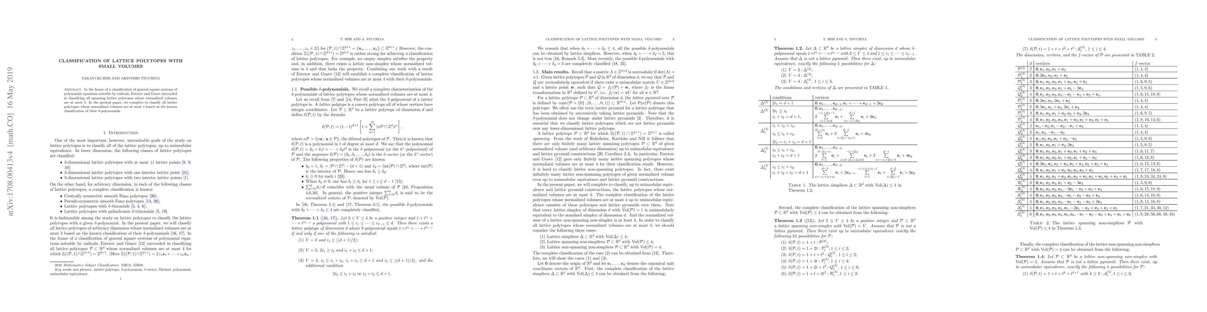In the frame of a classification of general square systems of polynomial equations solvable by radicals, Esterov and Gusev succeeded in classifying all spanning lattice polytopes whose normalized volumes are at most $4$. In the present paper, we complete to classify all lattice polytopes whose normalized volumes are at most $4$ based on the known classification of their $\delta$-polynomials.