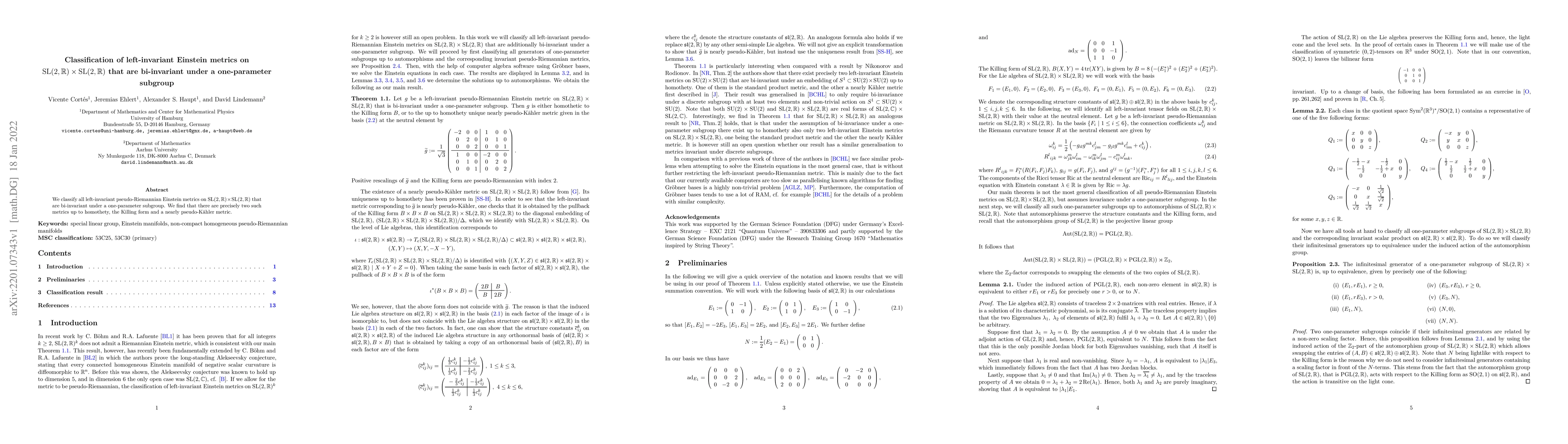 This paper classifies all left-invariant pseudo-Riemannian Einstein metrics on the direct product of two special linear groups, $\mathrm{SL}(2,\mathbb{R})\times \mathrm{SL}(2,\mathbb{R})$, that remain bi-invariant under a one-parameter subgroup. The authors identify two distinct metrics up to homothety: the Killing form and a nearly pseudo-Kähler metric.
