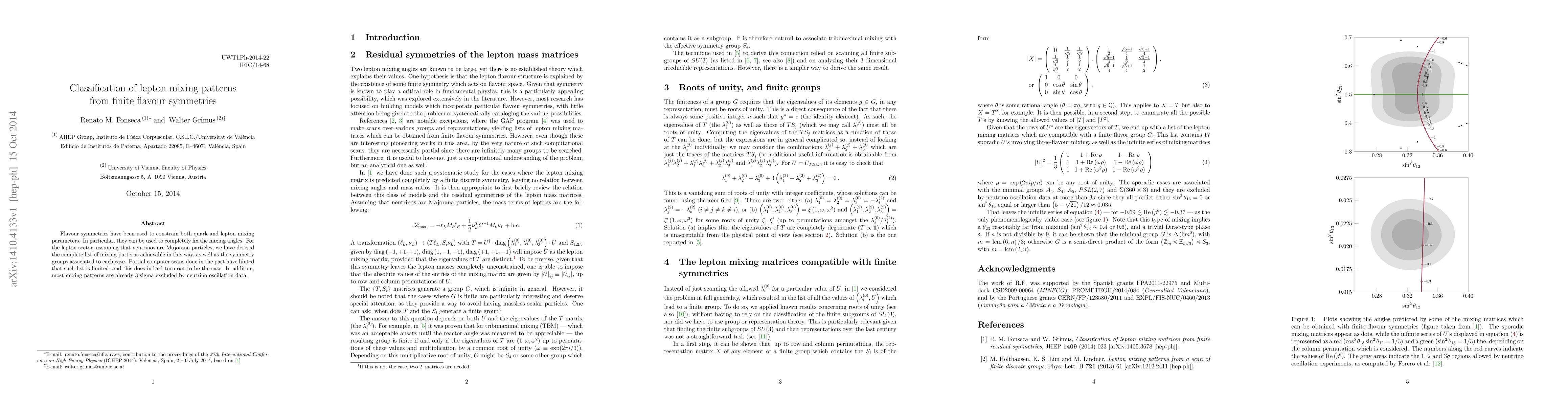 Flavour symmetries have been used to constrain both quark and lepton mixing parameters. In particular, they can be used to completely fix the mixing angles. For the lepton sector, assuming that neutrinos are Majorana particles, we have derived the complete list of mixing patterns achievable in this way, as well as the symmetry groups associated to each case. Partial computer scans done in the past have hinted that such list is limited, and this does indeed turn out to be the case. In addition, most mixing patterns are already 3-sigma excluded by neutrino oscillation data.
