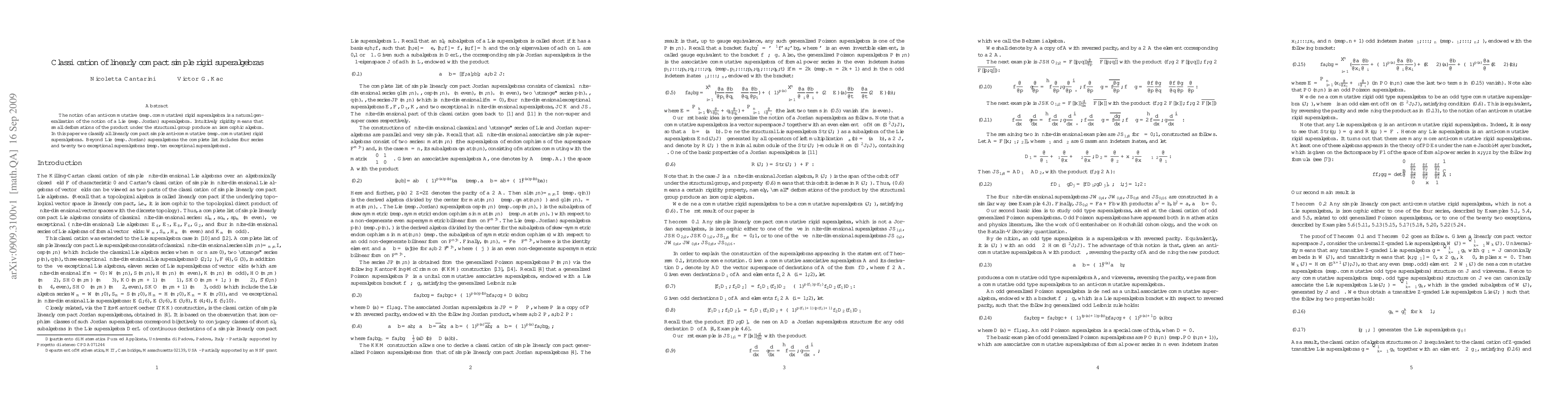This paper classifies all linearly compact simple rigid superalgebras, generalizing Lie and Jordan superalgebras, and identifies four series and twenty-two exceptional anti-commutative cases, along with ten exceptional commutative cases.