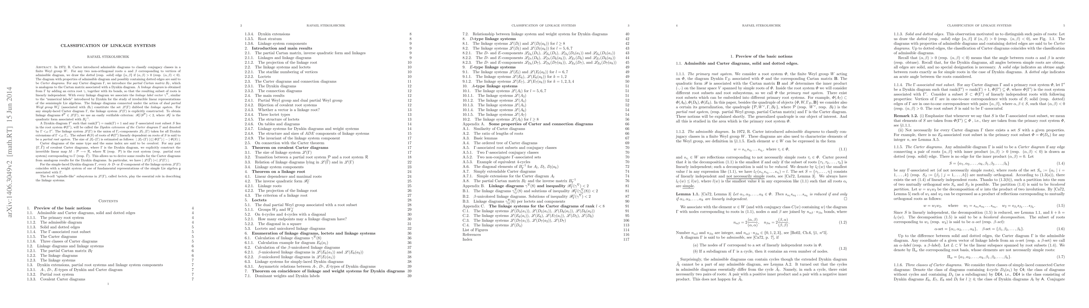 This paper classifies linkage systems derived from Carter diagrams by introducing linkage diagrams and linkage label vectors. It constructs linkage systems $\mathscr{L}(\Gamma)$ for simply-laced Carter diagrams and establishes a criterion for linkage diagrams, exploring Dynkin extensions and partial root systems to estimate the size of these systems.