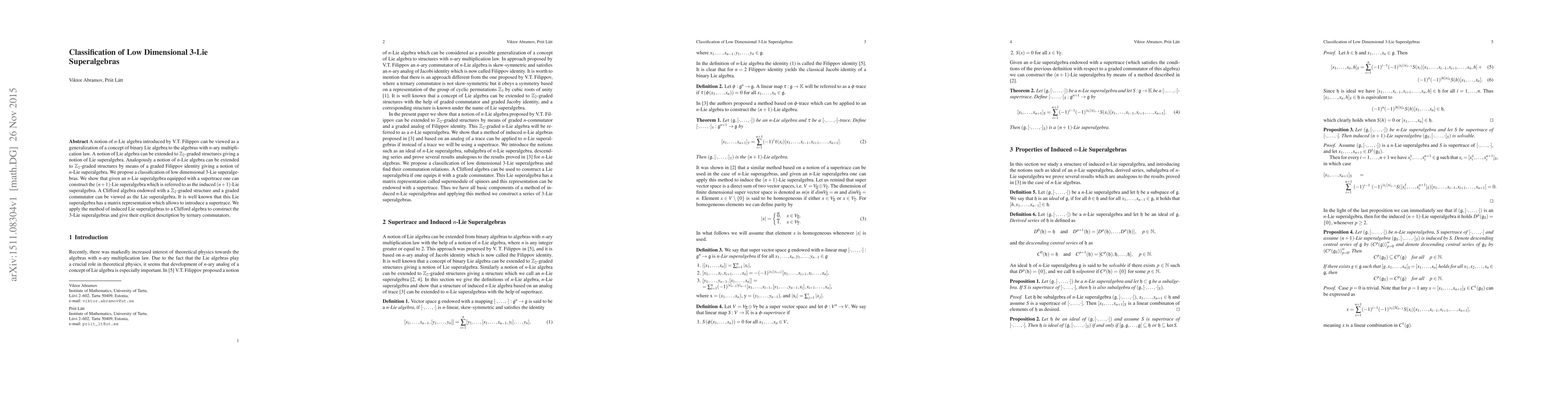 This paper classifies low dimensional 3-Lie superalgebras, extending the concept of n-Lie algebras to Z_2-graded structures. It constructs 3-Lie superalgebras from Clifford algebras using induced Lie superalgebras and provides their explicit ternary commutator representations.
