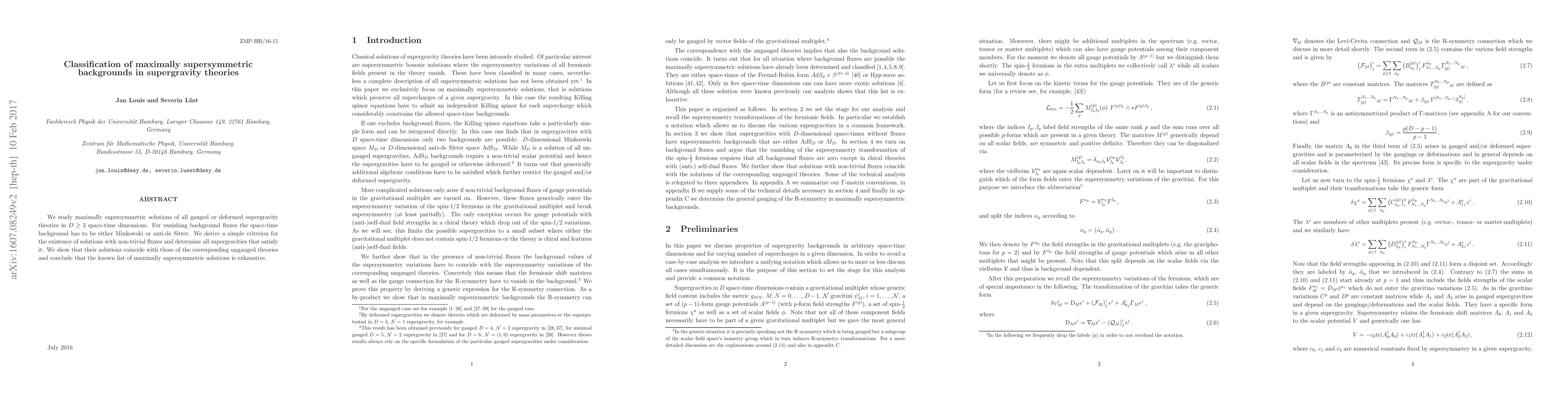 This paper classifies maximally supersymmetric solutions in gauged or deformed supergravity theories, showing that solutions with non-trivial fluxes exist in certain supergravities. It concludes that the known list of such solutions is complete and consistent with ungauged theories.