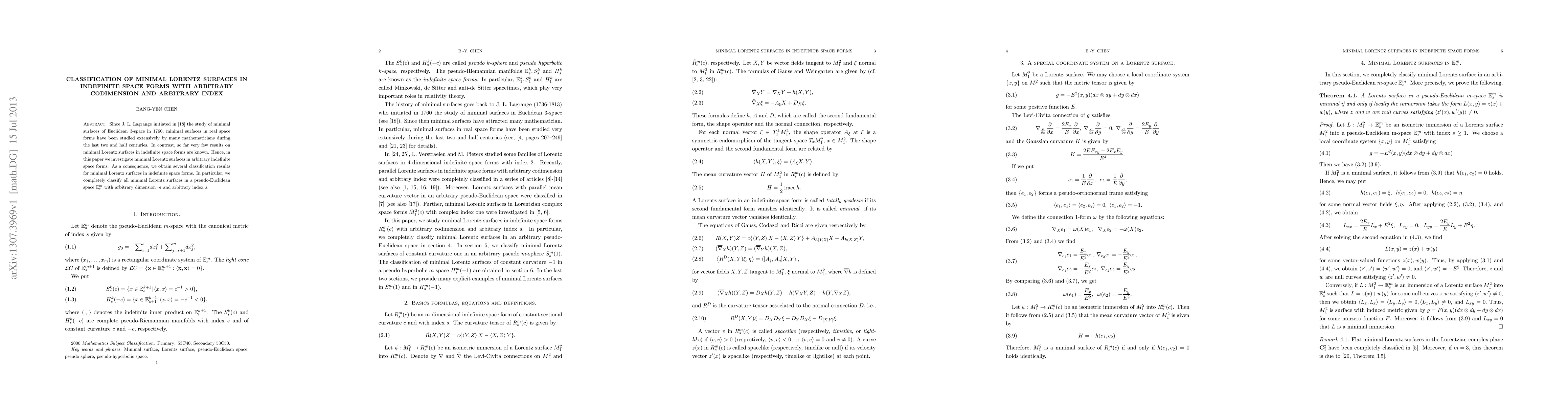 This paper classifies minimal Lorentz surfaces in arbitrary indefinite space forms, extending the extensive study of minimal surfaces in Euclidean space to pseudo-Euclidean spaces. It provides comprehensive results for minimal Lorentz surfaces in pseudo-Euclidean space $\mathbb E^m_s$ with any dimension $m$ and index $s$.
