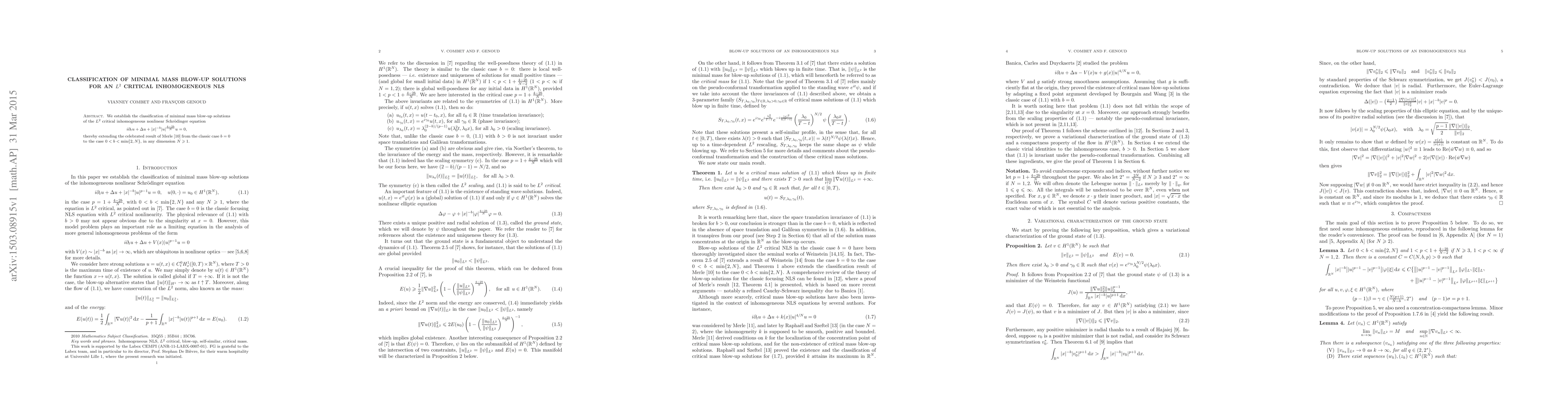 This paper classifies minimal mass blow-up solutions for the $L^2$ critical inhomogeneous nonlinear Schrödinger equation, extending Merle's classic result to cases where $0<b<\min\{2,N\}$ in any dimension $N\ge1$. The findings generalize the understanding of blow-up behavior for such equations.