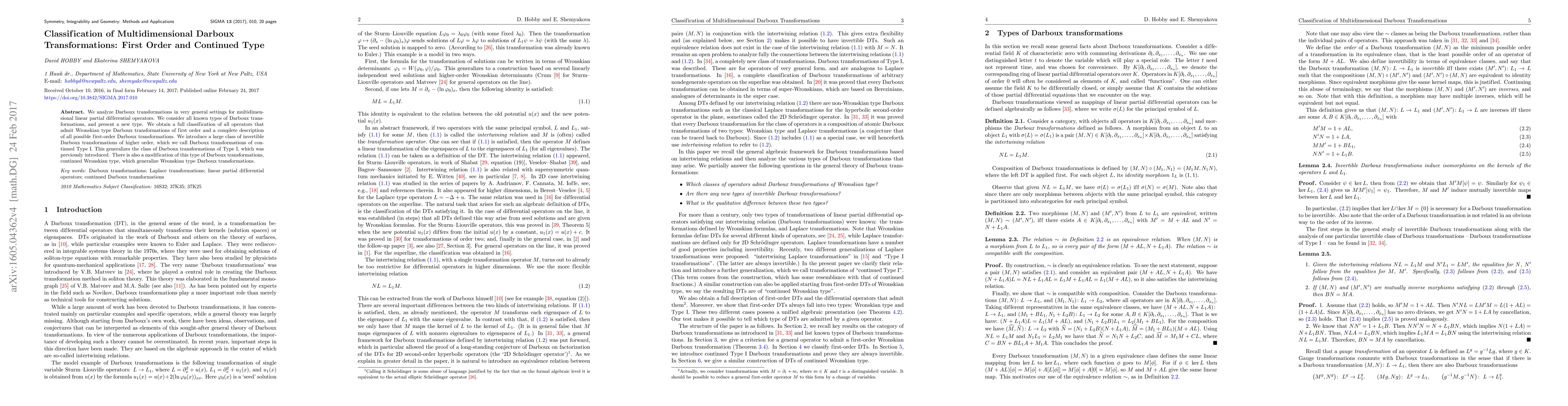 This paper classifies Darboux transformations in multidimensional linear partial differential operators, introducing new types and generalizing existing ones, providing a comprehensive understanding of first-order and higher-order Darboux transformations.