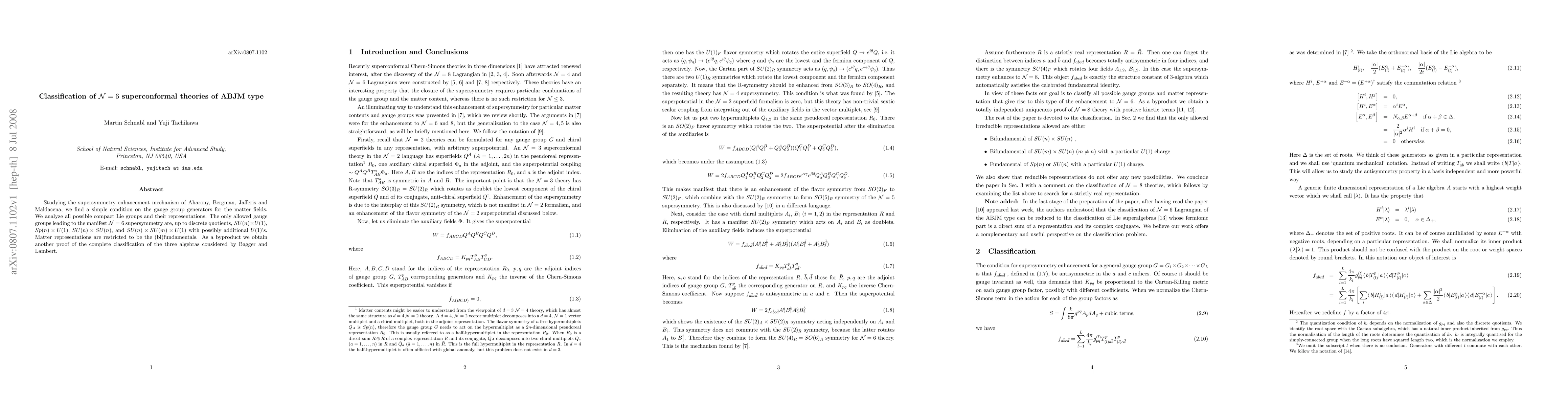 Studying the supersymmetry enhancement mechanism of Aharony, Bergman, Jafferis and Maldacena, we find a simple condition on the gauge group generators for the matter fields. We analyze all possible compact Lie groups and their representations. The only allowed gauge groups leading to the manifest N=6 supersymmetry are, up to discrete quotients, SU(n) x U(1), Sp(n) x U(1), SU(n) x SU(n), and SU(n) x SU(m) x U(1) with possibly additional U(1)'s. Matter representations are restricted to be the (bi)fundamentals. As a byproduct we obtain another proof of the complete classification of the three algebras considered by Bagger and Lambert.