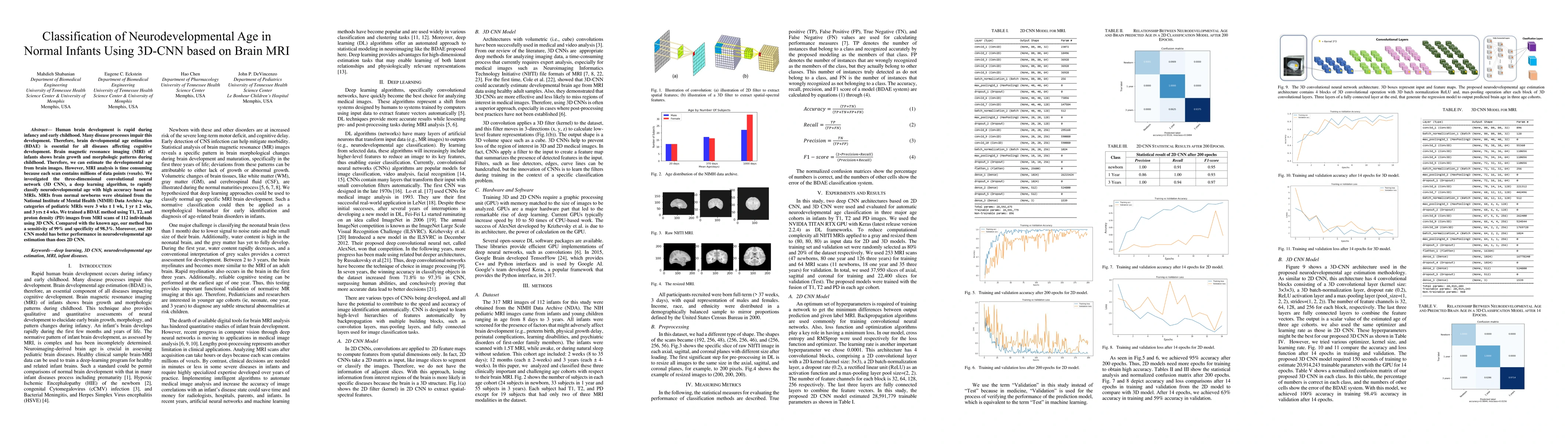 This study employs a 3D convolutional neural network (3D CNN) to classify neurodevelopmental age in normal infants from brain MRI scans, achieving high accuracy with a sensitivity of 99% and specificity of 98.3%. The 3D CNN model outperforms 2D CNN for estimating brain developmental age, offering a rapid and efficient alternative to traditional MRI analysis methods.