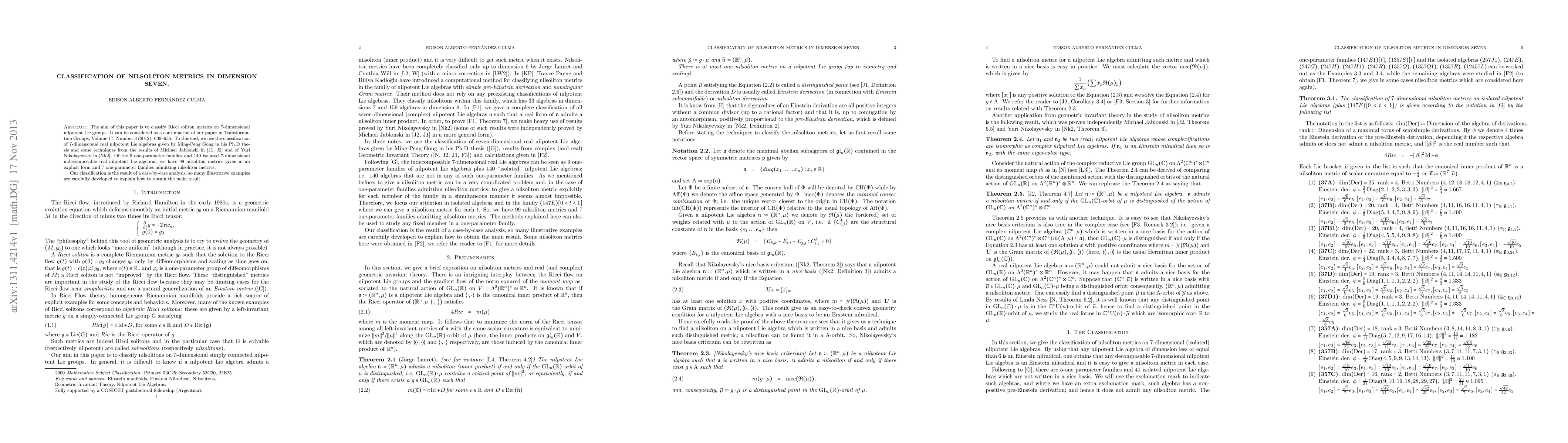 Researchers classified 99 explicit nilsoliton metrics on 7-dimensional nilpotent Lie groups, with 7 one-parameter families admitting such metrics.