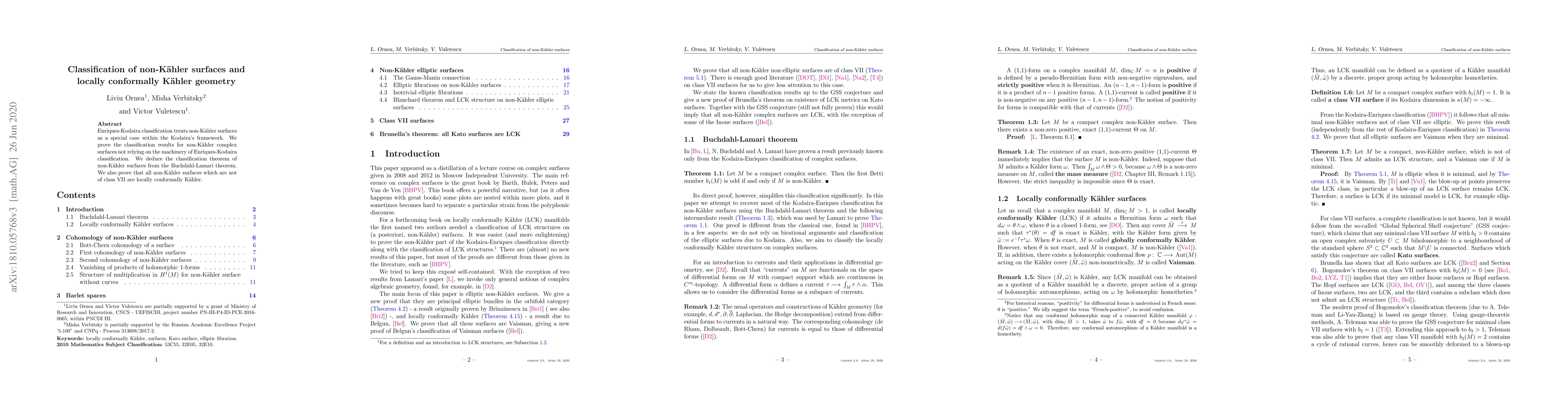 Summary: This paper classifies non-Kahler surfaces using the Buchdahl-Lamari theorem and demonstrates that all non-Kahler surfaces not of class VII exhibit locally conformally Kähler geometry.