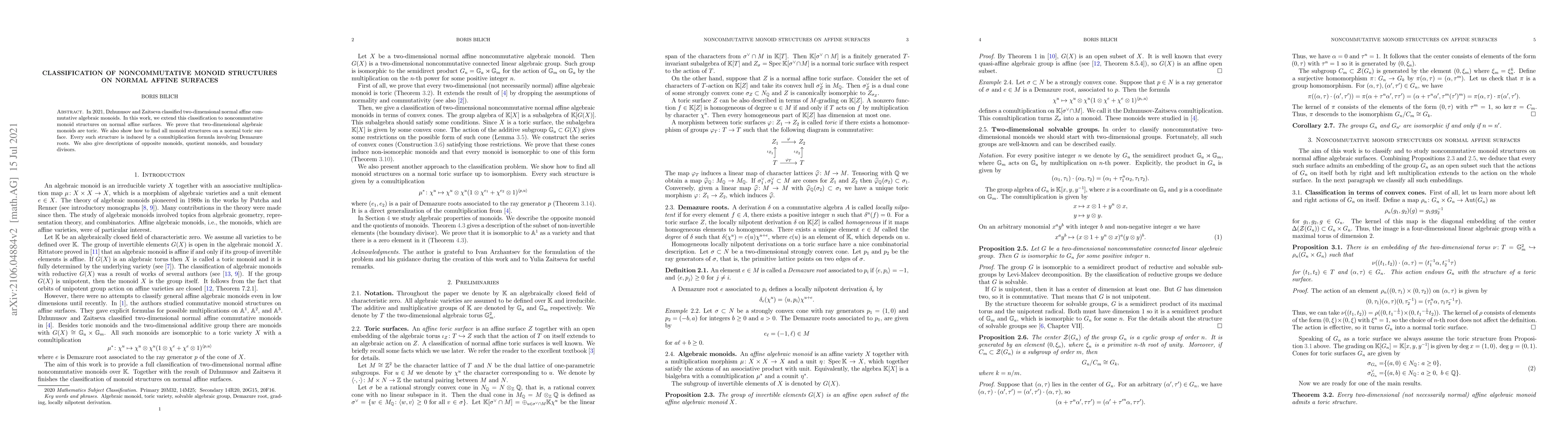 This paper extends the classification of noncommutative algebraic monoid structures on two-dimensional normal affine surfaces, proving these monoids are toric and detailing methods to find all such structures through comultiplication involving Demazure roots. It also describes opposite, quotient monoids, and boundary divisors.
