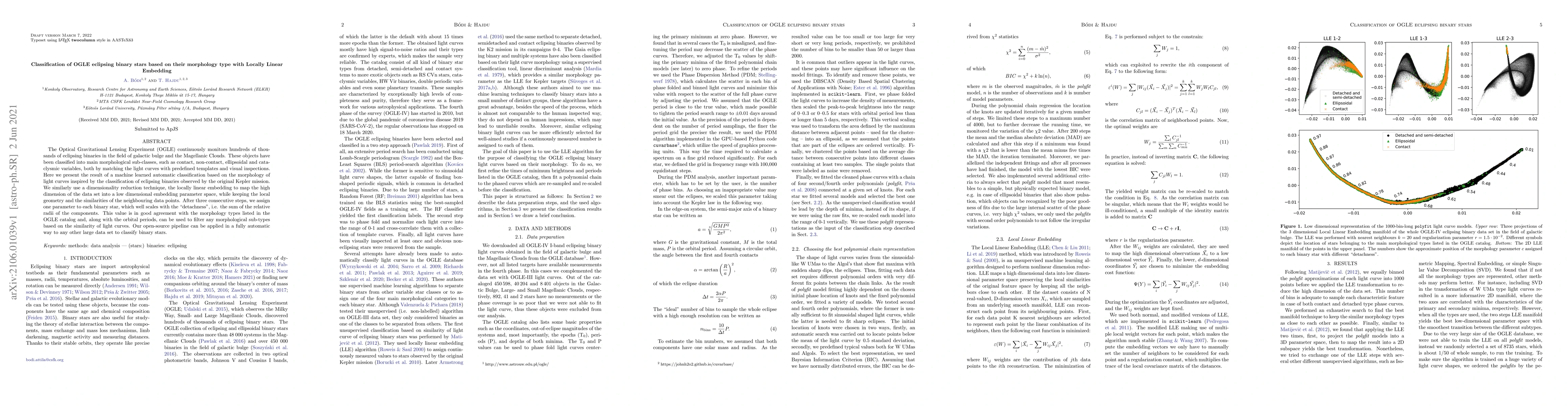 This paper presents an automatic classification method using machine learning and locally linear embedding to categorize OGLE eclipsing binary stars into morphological sub-types based on their light curve data. The method effectively maps high-dimensional data into a low-dimensional space, correlating the "detachness" parameter with the observed morphology types.