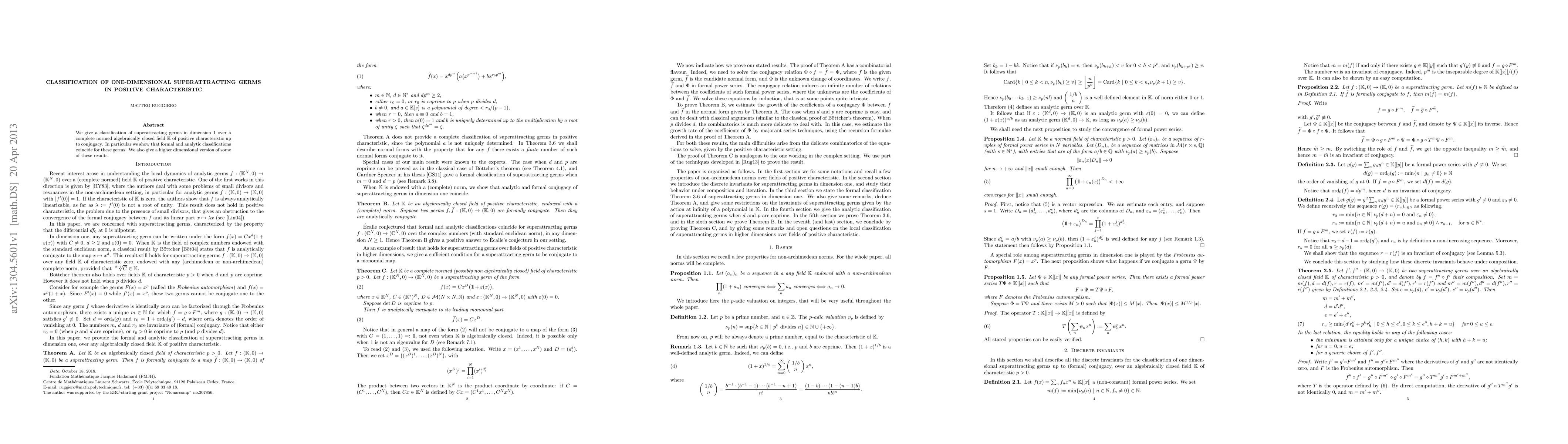 Researchers classify one-dimensional superattracting germs in positive characteristic fields, showing that formal and analytic classifications coincide for these germs.