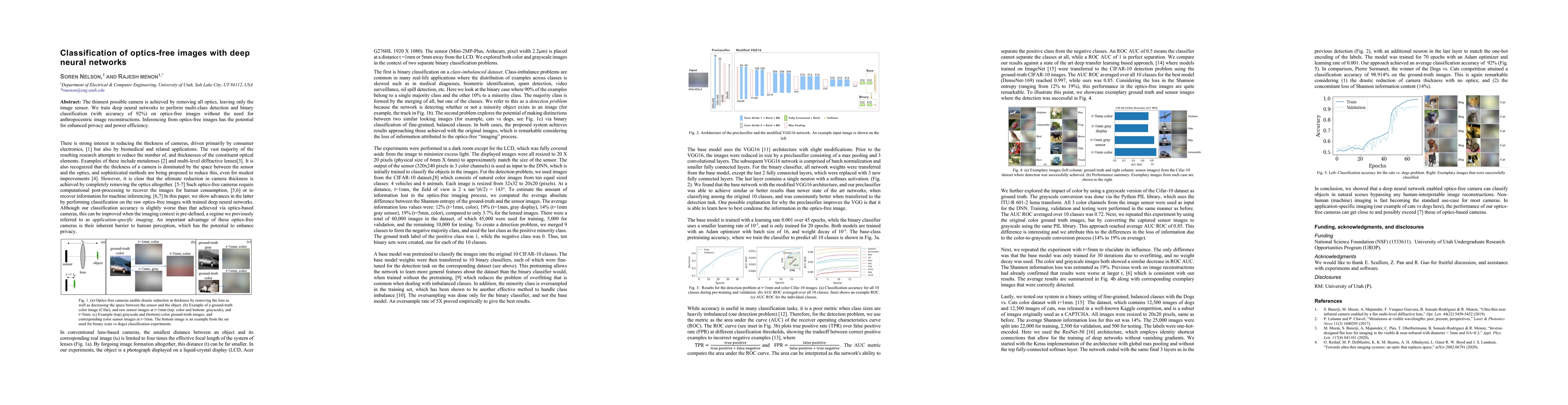 This paper explores the use of deep neural networks to classify optics-free images directly from sensors without traditional camera lenses, achieving 92% accuracy. This approach promises improved privacy and power efficiency.
