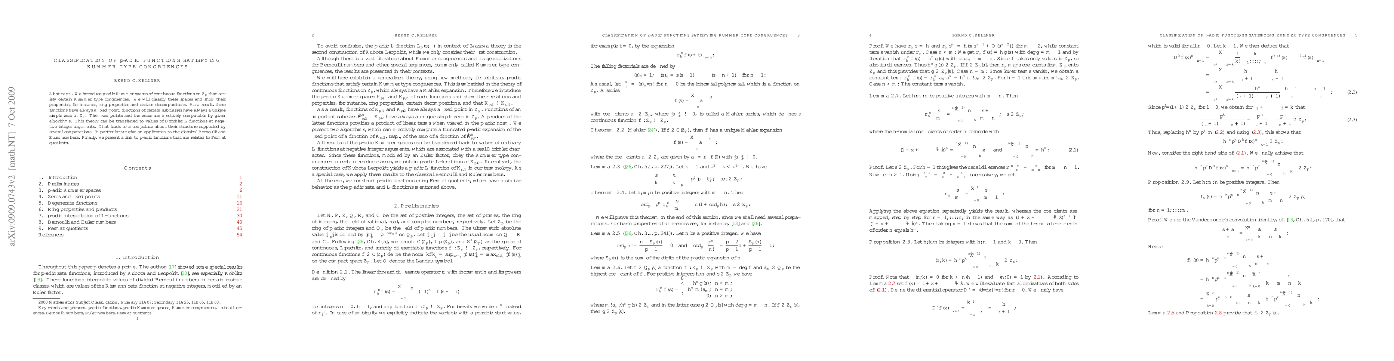 Researchers classify p-adic functions that satisfy Kummer type congruences, revealing fixed points and unique zeros, with potential applications to Dirichlet L-functions and classical numbers.