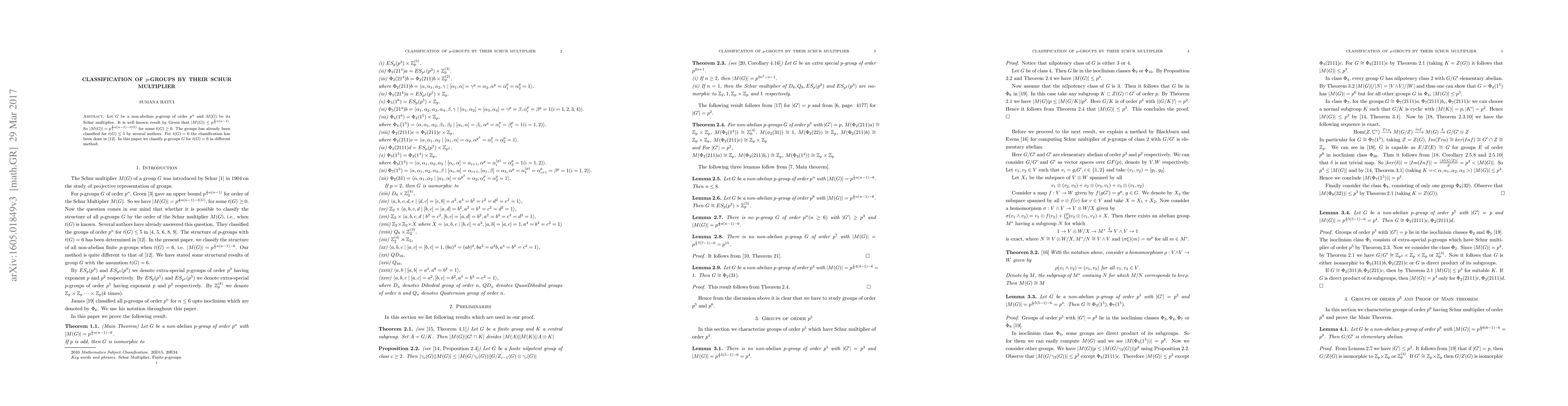 Let $G$ be a non-abelian $p$-group of order $p^n$ and $M(G)$ be its Schur multiplier. It is well known result by Green that $|M(G)| \leq p^{\frac{1}{2}n(n-1)}$. So $|M(G)|= p^{\frac{1}{2}n(n-1)-t(G)}$ for some $t(G) \geq 0$. The groups has already been classified for $t(G) \leq 5$ by several authors. For $t(G)=6$ the classification has been done. In this paper we classify $p$-groups $G$ for $t(G) = 6$ in different method.