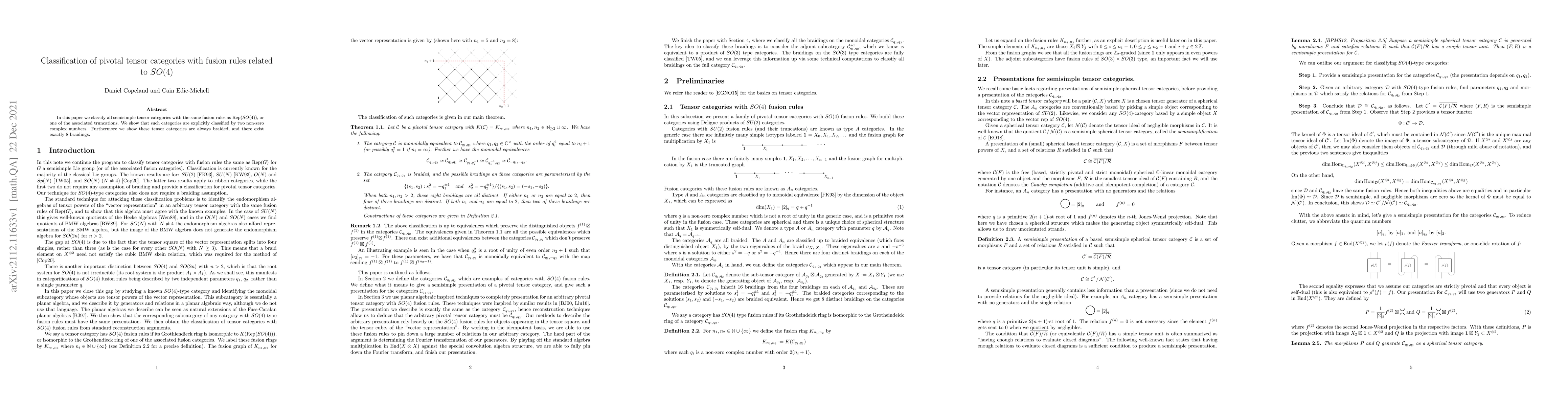 In this paper we classify all semisimple tensor categories with the same fusion rules as $\operatorname{Rep}(SO(4))$, or one of the associated truncations. We show that such categories are explicitly classified by two non-zero complex numbers. Furthermore we show these tensor categories are always braided, and there exist exactly 8 braidings.
