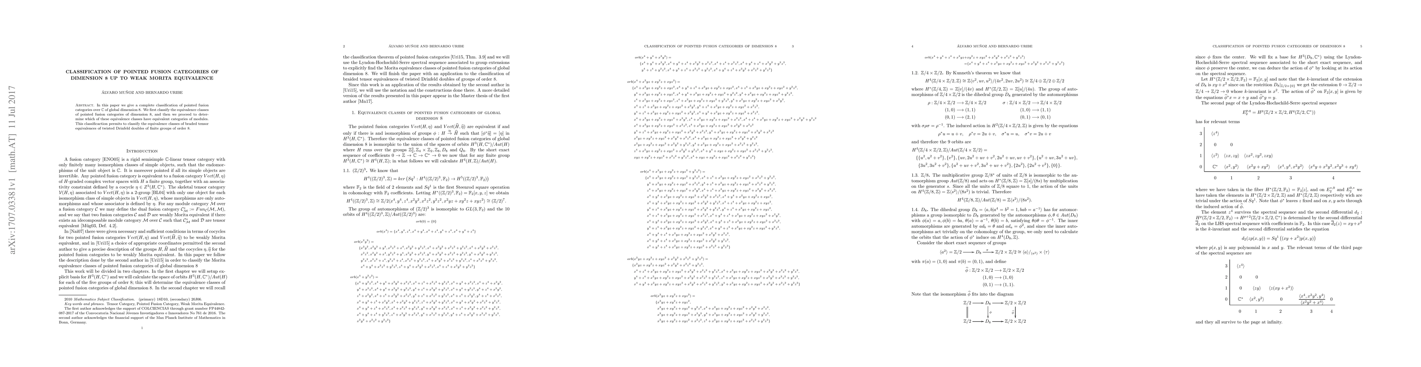 This paper provides a complete classification of pointed fusion categories over $\mathbb{C}$ with dimension 8, identifying equivalence classes up to weak Morita equivalence and determining the classes of equivalent module categories, facilitating the classification of braided tensor equivalences of twisted Drinfeld doubles of finite groups of order 8.