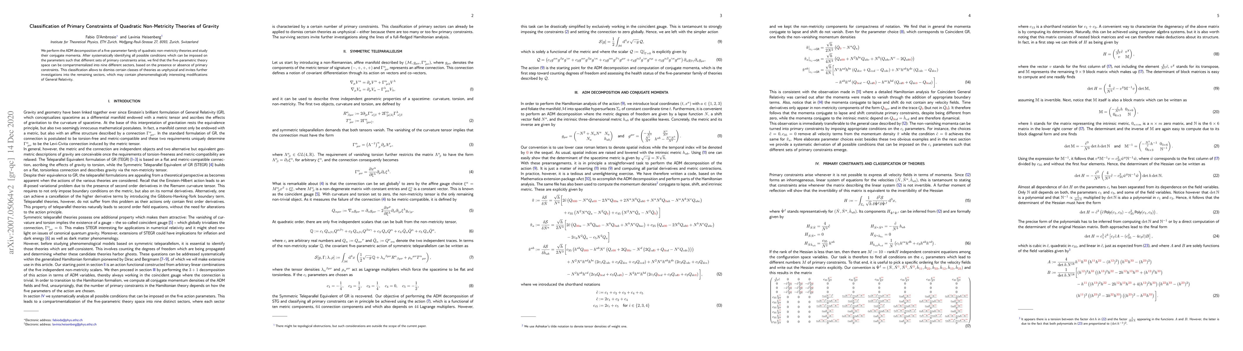 We perform the ADM decomposition of a five-parameter family of quadratic non-metricity theories and study their conjugate momenta. After systematically identifying all possible conditions which can be imposed on the parameters such that different sets of primary constraints arise, we find that the five-parametric theory space can be compartmentalized into nine different sectors, based on the presence or absence of primary constraints. This classification allows to dismiss certain classes of theories as unphysical and invites further investigations into the remaining sectors, which may contain phenomenologically interesting modifications of General Relativity.