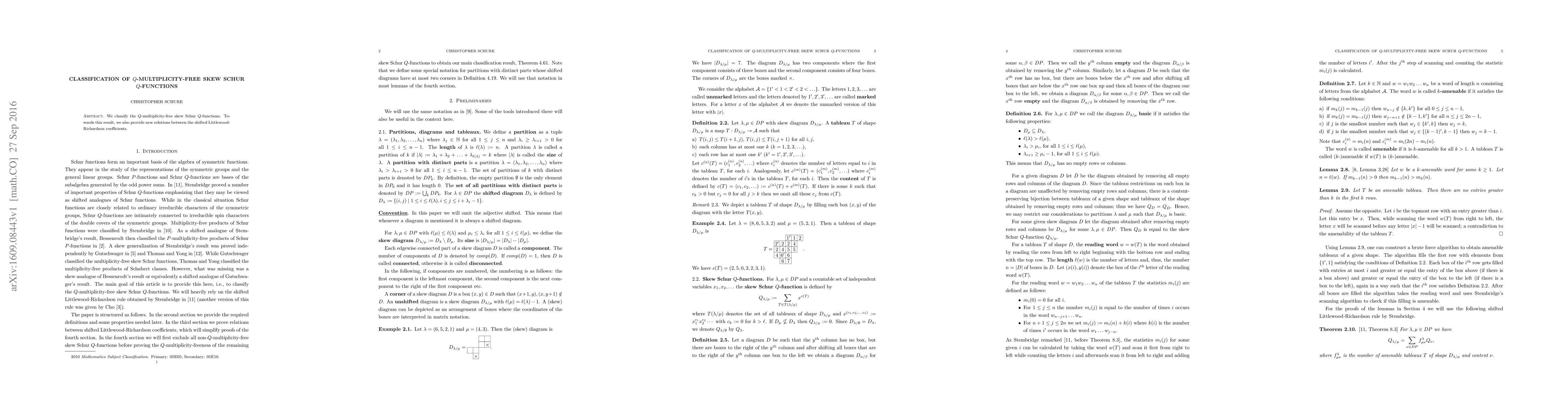 The paper classifies $Q$-multiplicity-free skew Schur $Q$-functions and presents new relations for shifted Littlewood-Richardson coefficients in the process.