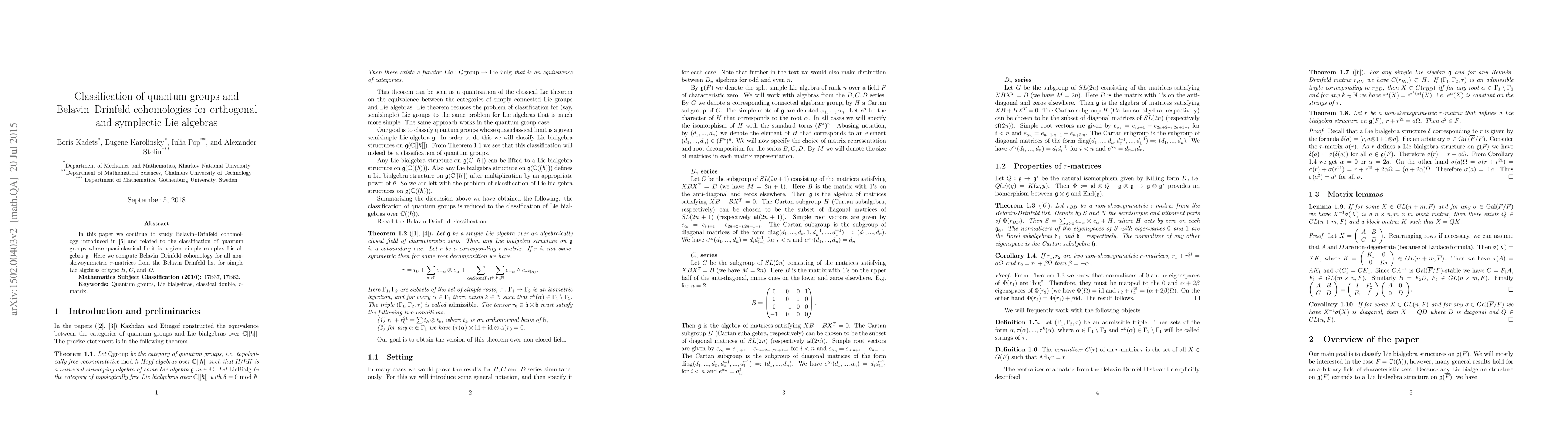 This paper classifies quantum groups associated with Belavin-Drinfeld cohomologies for orthogonal and symplectic Lie algebras, specifically computing these cohomologies for all non-skewsymmetric $r$-matrices from the Belavin-Drinfeld list for types $B$, $C$, and $D$.
