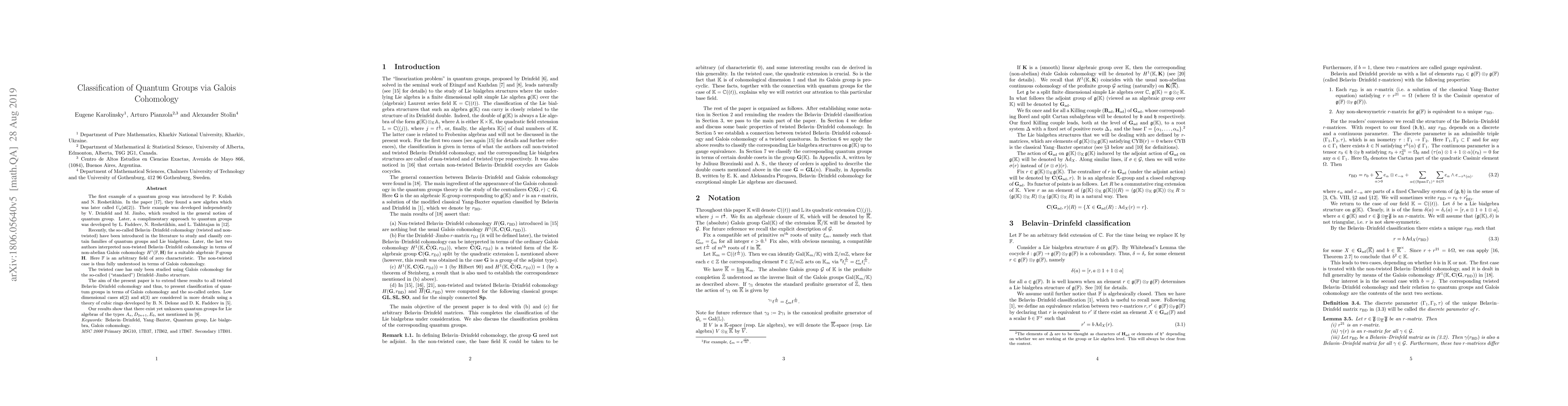 The first example of a quantum group was introduced by P.~Kulish and N.~Reshetikhin. In their paper "Quantum linear problem for the sine-Gordon equation and higher representations" published in Zap. Nauchn. Sem. LOMI, 1981, Volume 101 (English version: Journal of Soviet Mathematics, 1983, 23:4), they found a new algebra which was later called $U_q (sl(2))$. Their example was developed independently by V.~Drinfeld and M.~Jimbo, which resulted in the general notion of quantum group. Recently, the so-called Belavin-Drinfeld cohomologies (twisted and untwisted) have been introduced in the literature to study and classify certain families of quantum groups and Lie bialgebras. Later, the last two authors interpreted non-twisted Belavin-Drinfeld cohomologies in terms of non-abelian Galois cohomology $H^1(\mathbb{F}, \mathbf{H})$ for a suitable algebraic $\mathbb{F}$-group $\mathbf{H}$. Here $\mathbb{F}$ is an arbitrary field of zero characteristic. The untwisted case is thus fully understood in terms of Galois cohomology. The twisted case has only been studied using Galois cohomology for the so-called ("standard") Drinfeld-Jimbo structure. The aim of the present paper is to extend these results to all twisted Belavin-Drinfeld cohomologies and thus, to present classification of quantum groups in terms of Galois cohomologies and orders. Our results show that there exist yet unknown quantum groups for Lie algebras of the types $A_n, D_{2n+1}, E_6$.