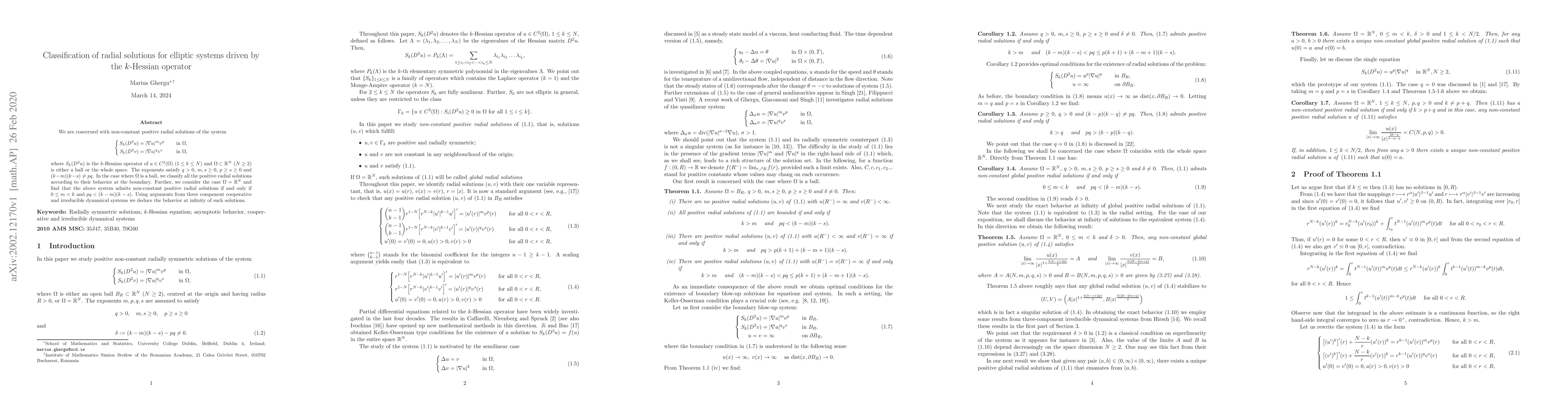 the above system admits non-constant positive radial solutions if and only if