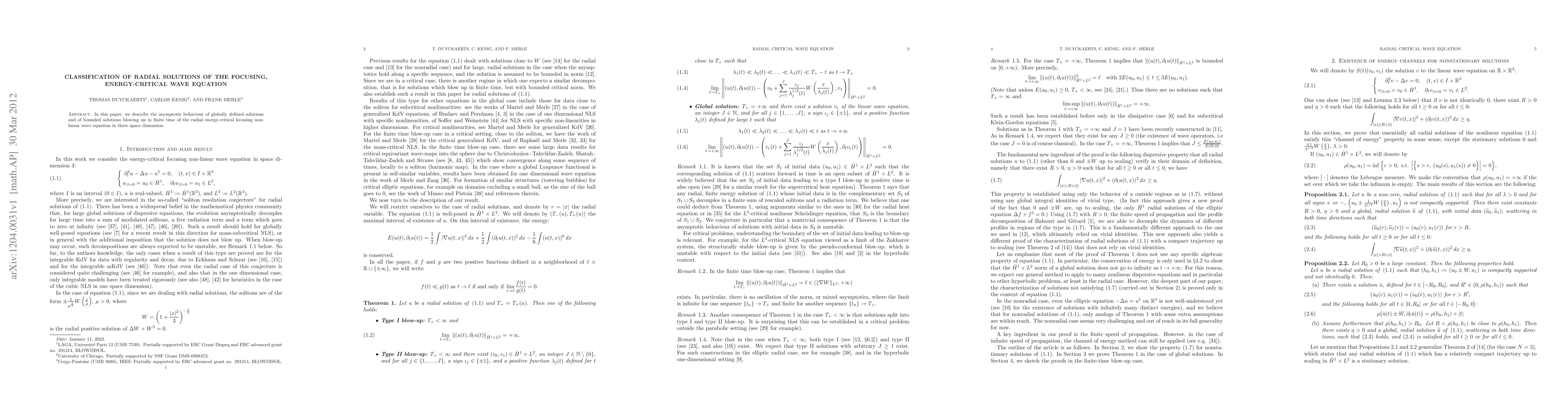 Summary: This paper investigates the asymptotic behavior of globally defined and finite-time blow-up solutions for radial, energy-critical focusing wave equations in three dimensions, classifying their characteristics and behaviors.