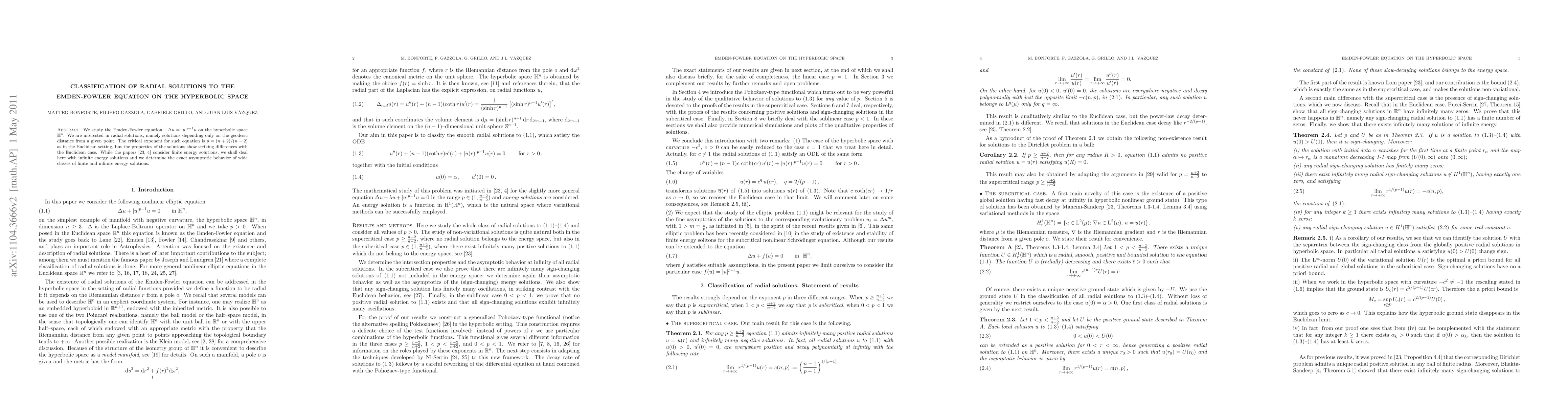 This paper studies radial solutions to the Emden-Fowler equation on hyperbolic space, focusing on infinite energy solutions and their asymptotic behavior, revealing distinct properties compared to Euclidean cases.
