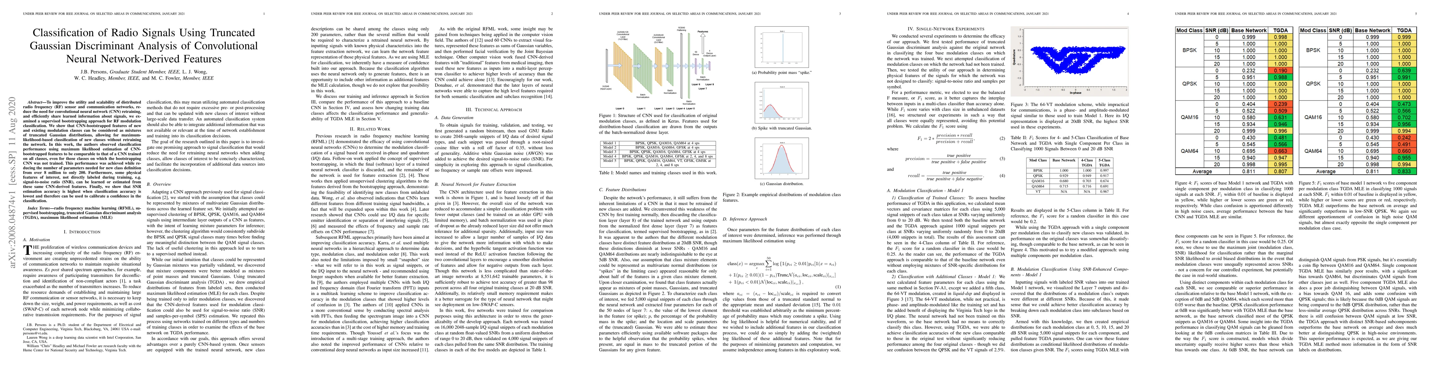 To improve the utility and scalability of distributed radio frequency (RF) sensor and communication networks, reduce the need for convolutional neural network (CNN) retraining, and efficiently share learned information about signals, we examined a supervised bootstrapping approach for RF modulation classification. We show that CNN-bootstrapped features of new and existing modulation classes can be considered as mixtures of truncated Gaussian distributions, allowing for maximumlikelihood-based classification of new classes without retraining the network. In this work, the authors observed classification performance using maximum likelihood estimation of CNNbootstrapped features to be comparable to that of a CNN trained on all classes, even for those classes on which the bootstrapping CNN was not trained. This performance was achieved while reducing the number of parameters needed for new class definition from over 8 million to only 200. Furthermore, some physical features of interest, not directly labeled during training, e.g. signal-to-noise ratio (SNR), can be learned or estimated from these same CNN-derived features. Finally, we show that SNR estimation accuracy is highest when classification accuracy is lowest and therefore can be used to calibrate a confidence in the classification.