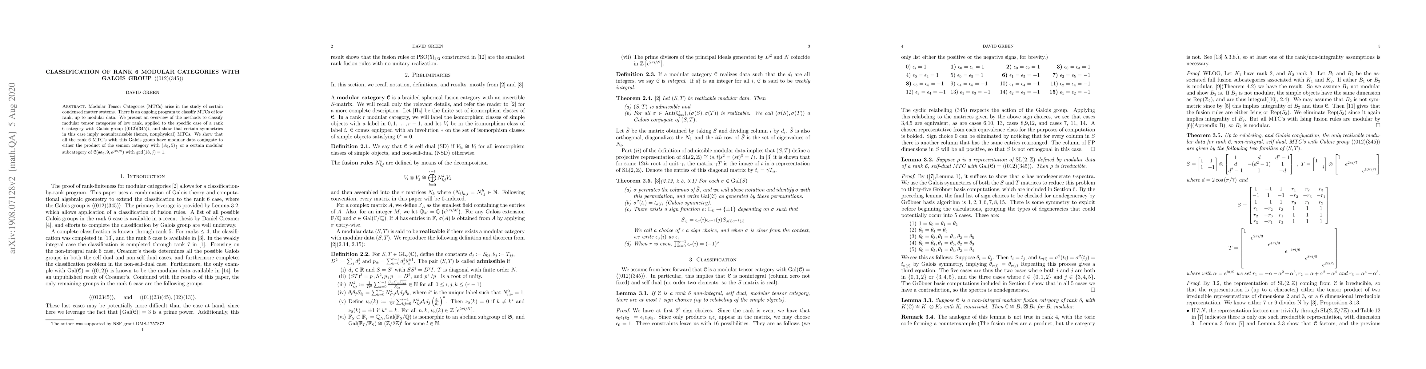 This research classifies rank 6 modular tensor categories with a specific Galois group, revealing nonunitarizable structures that are nonphysical. It shows that these categories have modular data linked to the semion category or a subcategory of $\mathcal{C}(\mathfrak{so}_5, 9, e^{j\pi i/9})$.