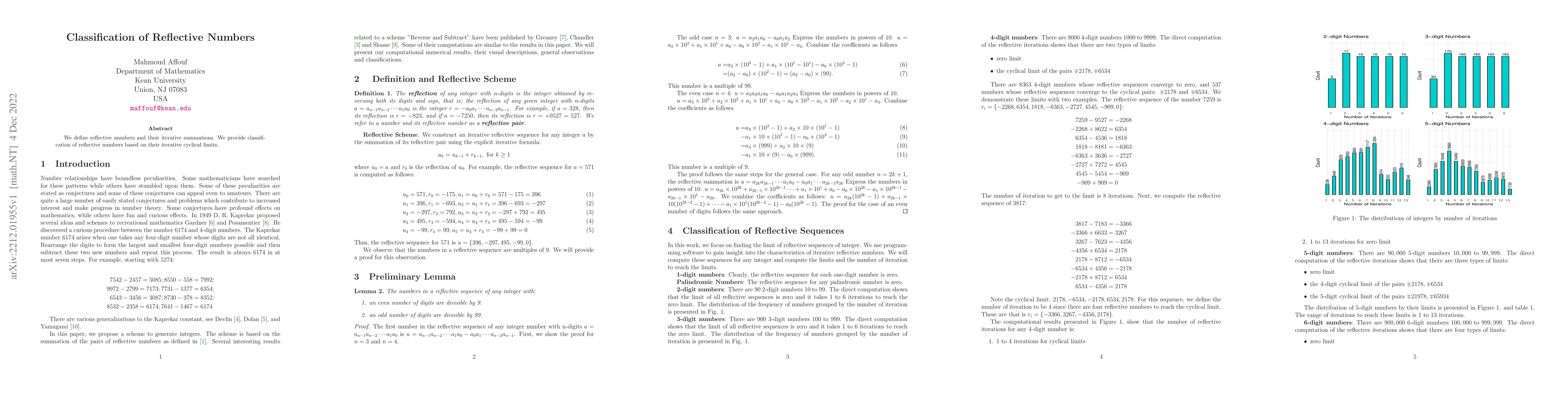 Summary: This paper introduces reflective numbers and their iterative summations, classifying them according to their cyclical limits through iterative processes. The classification reveals distinct patterns in the behavior of these numbers.