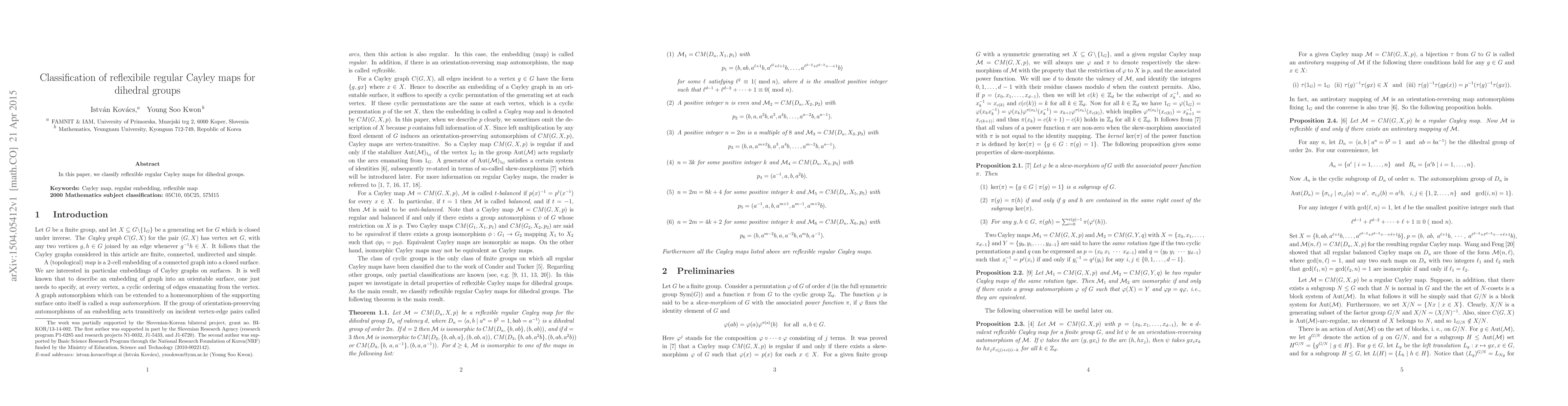 This paper provides a classification of reflexible regular Cayley maps specifically for dihedral groups, contributing to the understanding of symmetries in geometric group theory. The results offer insights into the structure of these maps and their applications.